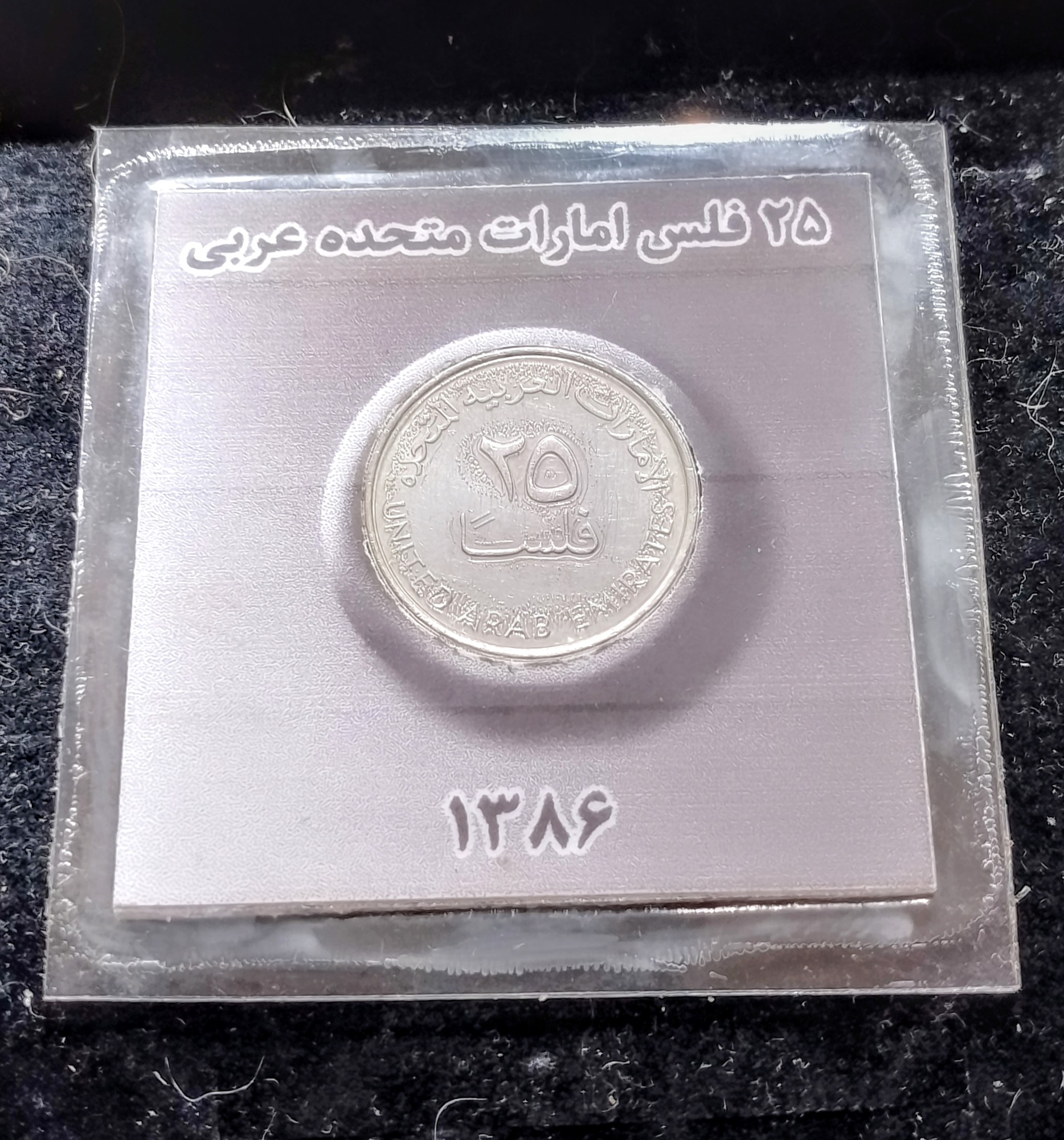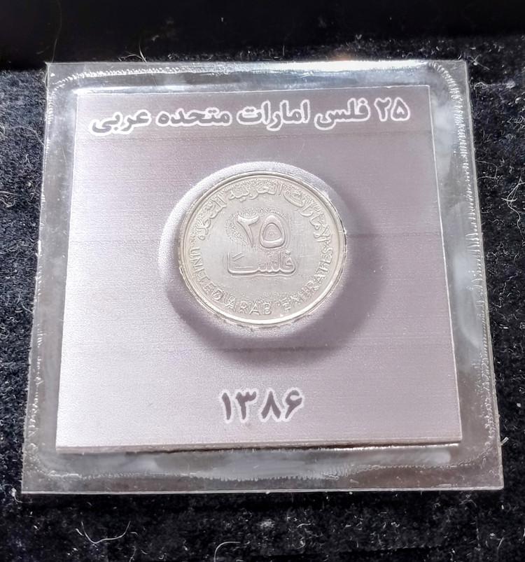 سکه 25 فلس امارات متحده عربی این سکه در کاور مخصوص سکه تقدیم می شود و مطابق با تصویر هر سوالی که دارید را قبل از خرید بفرمایید